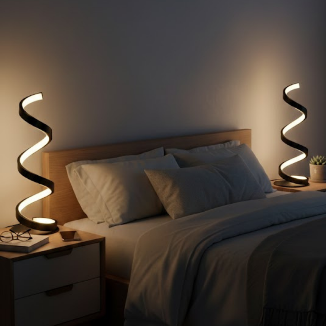 Modern spiral tasarım, yumuşak LED ışık ve dekoratif duruşuyla bu ürün, klasik masa ve gece lambalarına göre çok daha estetik bir deneyim sunar.